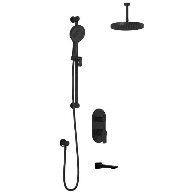 Shower system with: 3-Way AQUATONIK™ Type T/P ½'' thermostatic valve - Chrome and matte black